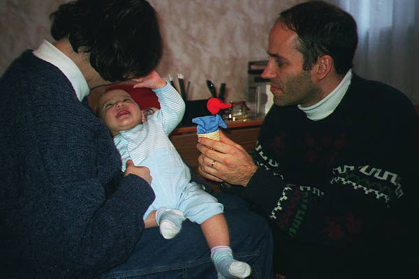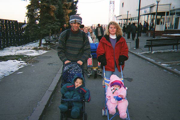 We spent the weekend preparing as well as we could. Fortunately, we knew this would likely happen fast, so we had previously bought a crib, stroller, car seat, and other generic bulky baby stuff. But, without knowing who the actual baby was, we couldn't buy the more personal things. But now we knew that Dana was a she, and how big she was, so we stormed Babies 'R Us, trying to guess what we might need while travelling and immediately upon our return. We bought a suitcase full of clothes, toys, books, medicines, etc. We also bought a suitcase full of gifts for the orphanage - and other people along the way. Finally, we cashed in the Delta frequent flier miles that we had been saving for a rainy day, and just had enough to fly roundtrip from Washington to Moscow business class - a luxury we greatly appreciated.