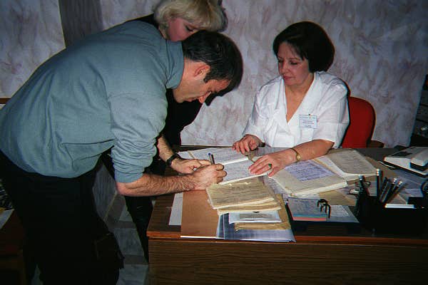 When we first got to Moscow, we went to a Russian doctor to get Dana officially checked out. This was required to by the U.S. embassy where we were headed the next moring.