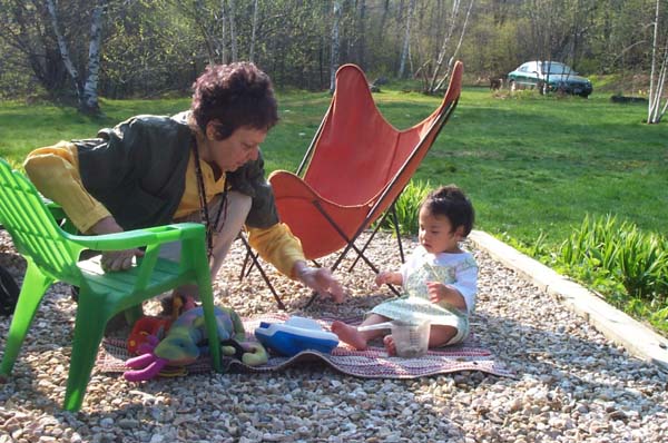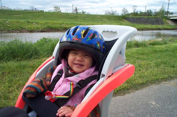 Well, we know Dana belongs in our family, because she's a traveller. She's totally mastered walking. Actually, she's starting to run around now. She loves backpacking, and she learned to bicycle. She's a trooper in the car and on the plane. She's been everywhere with us. New York, New Jersey, Massachusetts, and The Netherlands!