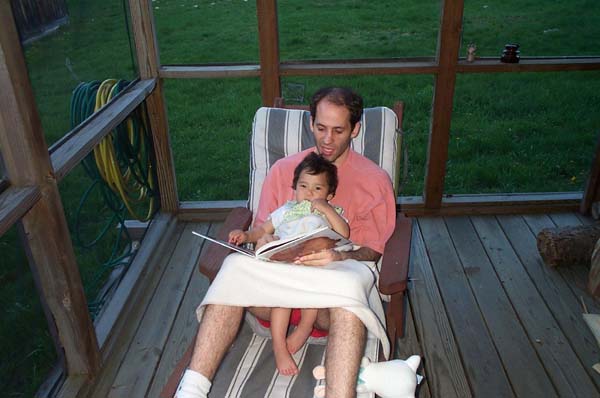 evening - Daddy, Dana, blankie, and a bear book. Life doesn't get much