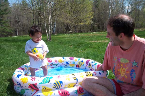 first swim in a pool! Well, walk is more like it. Dana doesn't