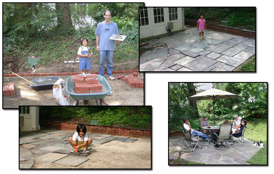 Our house project this year was to build a patio in the backyard. Dana helped Ben - and we learned about digging, brickwork, and stone cutting. All in all, it was very hard work, but a lot of fun - and we are now happily enjoying our new patio furniture!